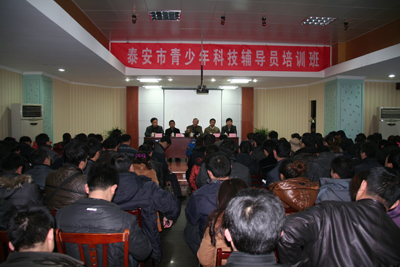 2012年2月25日-26日,泰安市科技馆、泰安市教育局基教科在泰安市瑶池大酒店7楼会议室联合举办了2012年泰安市青少年科技辅导员培训班。泰安市科技馆馆长楚远远、市教育局基教科科长徐振涛、副科长郑洪岩出席此次培训班开班仪式。市直及县市区共有258所学校、303名科技辅导员参加了此次培训。