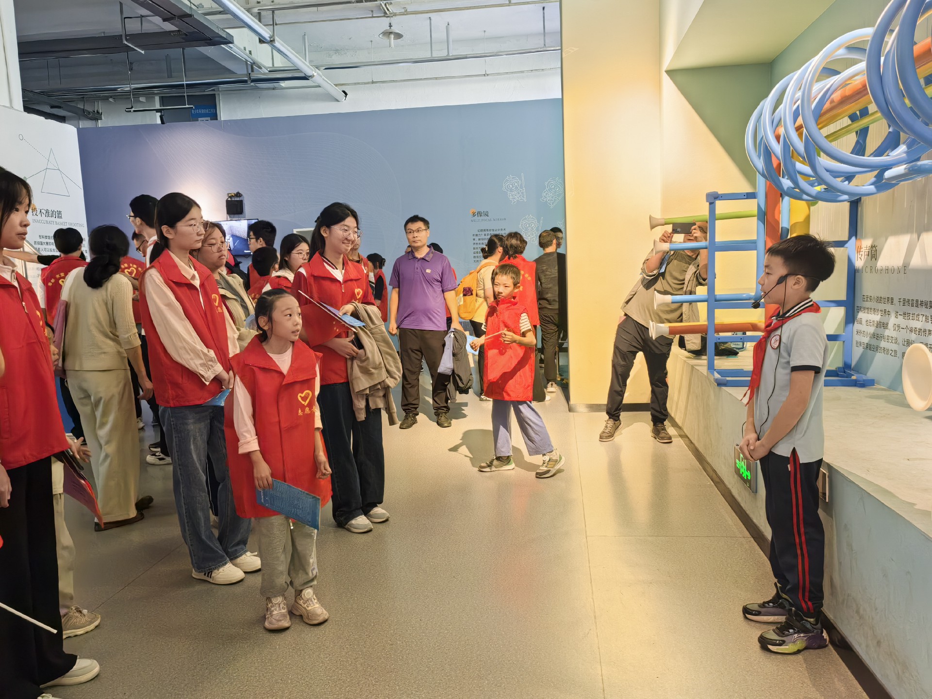 科普剧场《流动工坊》实验表演生动展示了"流体流速越快压强越小"的科学规律,让观众在观察中理解抽象原理。二楼展厅的"红领巾讲解员"成为独特风景,来自岳峰小学的6名小讲解员为观众讲解菲涅尔透镜、倾斜小屋等展品。在地震体验区旁,急救科普活动同步开展,不少成年人上前实操学习心肺复苏。