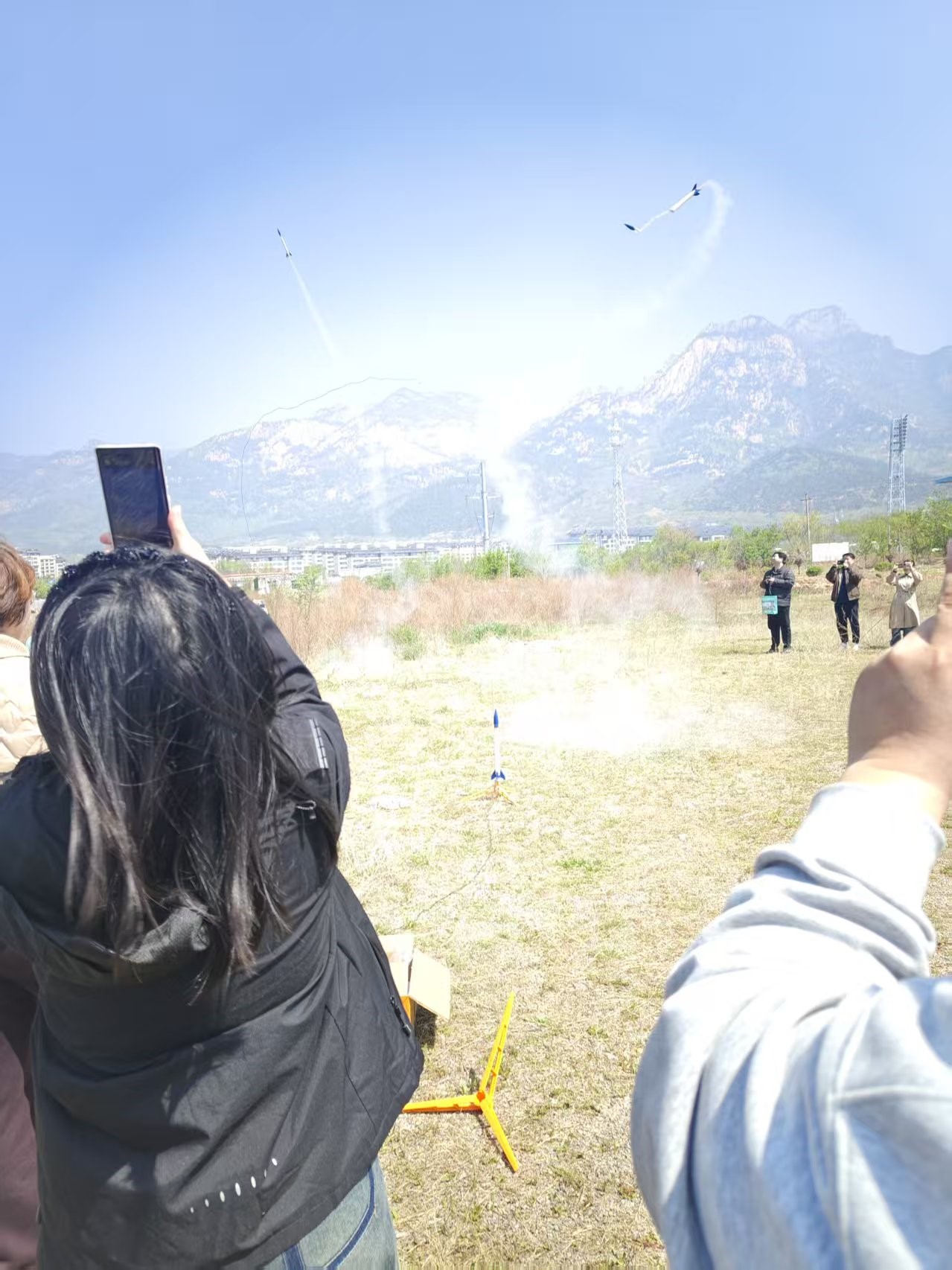 培训中,赛事裁判员对比赛规则进行了全面解读。随后,参训老师们亲自动手,参与了“逐梦太空”火箭设计制作环节。大家认真组装箭体、拼接尾翼,手中的火箭零件逐渐成形。在泰山脚下,一枚枚亲手制作的火箭呼啸升空,尾焰划破天际,降落伞缓缓打开。老师们纷纷举起手机记录这激动人心的时刻,现场欢呼声此起彼伏。丰富而精彩的培训内容令大家受益匪浅。