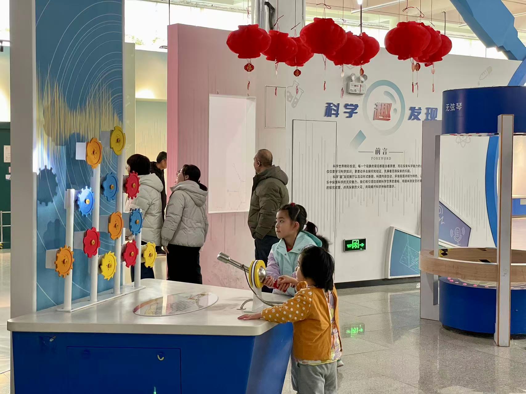 在做好便民服务的同时,科技馆积极推动科普宣传与赛事活动深度融合。馆内常设基础科学、航天展区、电力展厅、VR虚拟现实展厅、科普影院、地震体验等12个展区,展品200余套件,集趣味性与知识性于一体。正在展出的“灯塔·逐浪——文圣常的海浪科学人生”主题展,通过“光山少年”“逐梦向海”“耕海踏浪”“精神灯塔”四大篇章,以500余件科技史料和互动展品,讲述我国海浪研究开拓者文圣常院士的感人事迹。大量观众在观赛之余走进科技馆,在互动展项前驻足体验,感受科学魅力。