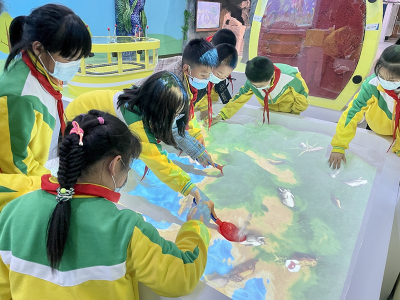 在展厅入口的森林王国,活灵活现的小动物标本令人眼前一亮,身临其境看看它们的样子,让孩子们更加懂得要爱护动物、保护生态环境。小小建筑师、水上世界、互动涂鸦、魔幻沙盘、滑梯投影、太阳能小车、谁在夜里不睡觉等各种新奇好玩的展品让孩子们兴奋雀跃,欲罢不能。大家认真听取讲解,亲身感受了各种神奇的科技现象,兴致勃勃体验了有趣的互动项目,在探索奥秘、玩转科学中激发了好奇心和求知欲。