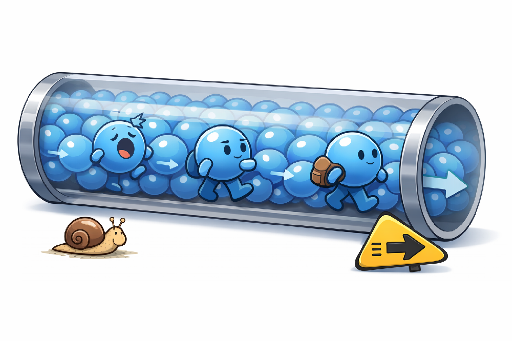 想象一根装满水的水管:水管里每一滴水,其实都不怎么动。你在这头一拧水龙头,另一头的水立刻就喷出来。